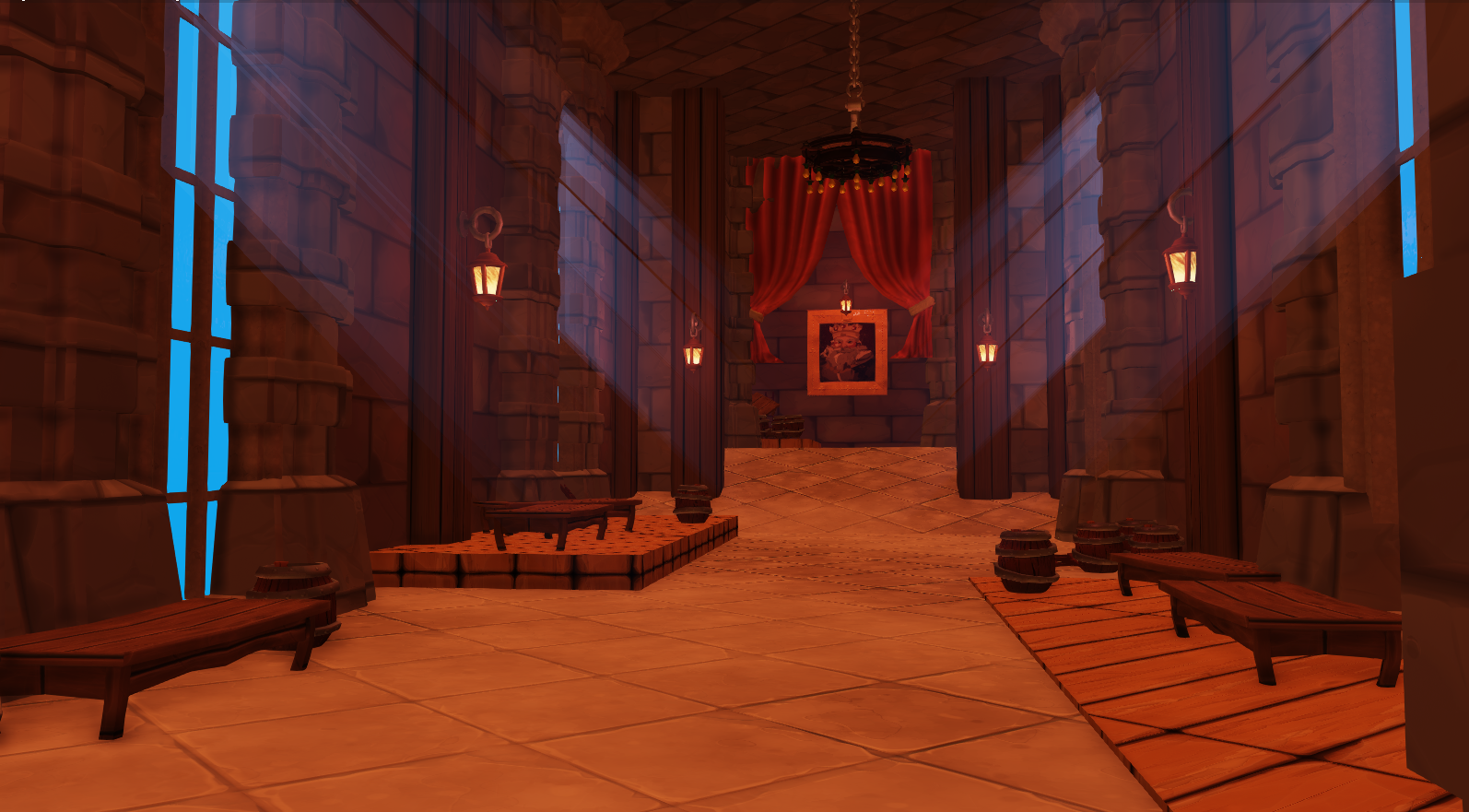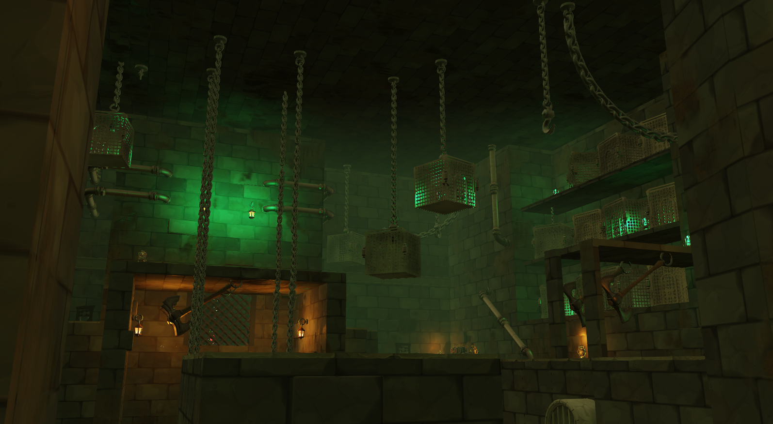 During this project I was the person who was responsible for creating all of the environment maps for the lighting to the different levels. Below are some screenshots from the game to showcase the different lights in the levels.